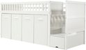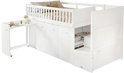 - Espace de rangement généreux : Sous le lit se trouvent 2 armoires et 1 placard de rangement, offrant un espace de rangement flexible pour les vêtements, les livres, les speelgoed ou autres objets personnels.