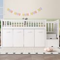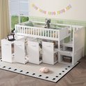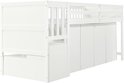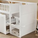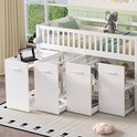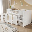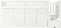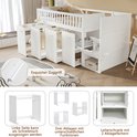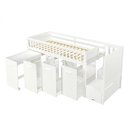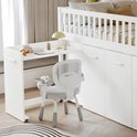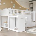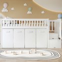 Lit superposé, lit multifonctionnel, lit enfant avec protection antichute et barreaux, avec bureau/penderie/casiers, avec 2 casiers dans l'escalier, pin + MDF, blanc, 90 x 200 cm
