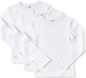 Joli lot de 3 T-shirts basiques blancs à manches longues, en coton durable. Jolis sous-vêtements pour garçons. Ces chemises ont un col rond. Ce sous-vêtement n'a pas d'étiquette de taille, mais une impression avec des informations de taille et de lavage. L'ensemble de sous-vêtements Nice Boys forme une merveilleuse couche supplémentaire pendant l'hiver. Matière : 95 % coton durable, 5 % élasthanne.