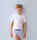 Les sous-vêtements pour garçons les plus doux, des T-shirts blancs basiques en coton biologique doux. Joli lot de 3 T-shirts basiques blancs pour garçons en coton biologique. Sous-vêtements doux. Nous avons conçu des caleçons confortables pour cela. Ce sous-vêtement n'a pas d'étiquette de taille, mais une impression avec des informations de taille et de lavage.