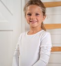 Bel ensemble de 3 T-shirts blancs basiques à manches longues, sous-vêtements filles en coton durable. Ces chemises ont un col rond. Ce sous-vêtement pour filles n'a pas d'étiquette de taille, mais une impression avec des informations sur la taille et le lavage. Les beaux sous-vêtements pour filles forment une merveilleuse couche supplémentaire pendant l'hiver. Matière : 95 % coton durable, 5 % élasthanne.