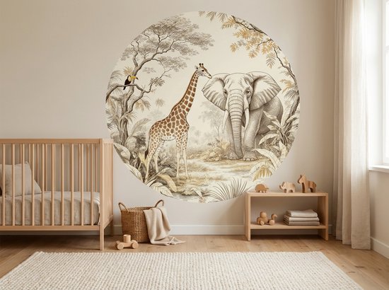 Little Livo - Muursticker Rond bébé/chambre d'enfant - Muursticker Animaux de la jungle - 120 cm x 120 cm - PVC Autocollant - Décoration Murale