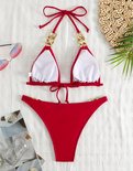 Préparez-vous pour un été plein de plaisir et de style ! Commandez votre ensemble de bikini Chain Ring Link Triangle Halter dès aujourd'hui et brillez sur la plage !