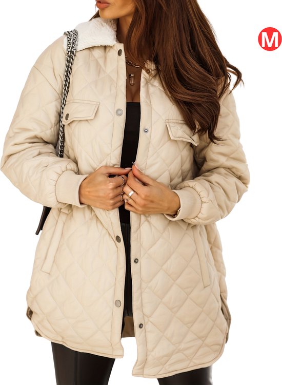 Livano Veste d'hiver - Parka Veste d'hiver pour femme - Hiver - Adulte - Élégant - Beige - Taille M