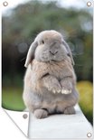 Lop nain assis sur un mur affiche de jardin toile en vrac 60x90 cm - toile de jardin / toile d'extérieur / Peintures pour l'extérieur (décoration de jardin)