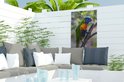 Les affiches de jardin sont spécifiquement adaptées à une utilisation en extérieur. Ce tissu peut donc prendre un coup. Une bâche en bisonyle a été utilisée pour la bannière. Cette voile est une bâche enduite avec une belle finition. L'affiche de jardin est résistante aux UV et imprimée au latex, elle ne se décolore donc pas au soleil. Un anneau a été placé dans chaque coin du tissu, afin que vous puissiez facilement accrocher le tissu. Enfin, la toile est excellente à haute ou basse température et contient de l'encre qui durera au moins 3 ans.