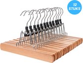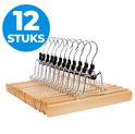 Lot de 12 cintres pour pantalons ou jupes en bois massif - Avec protection antidérapante en feutre à l'intérieur - couleur bois naturel