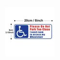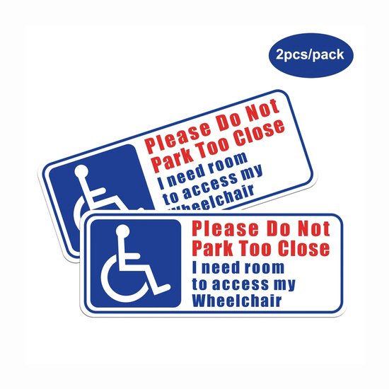 Cet ensemble d'autocollants contient 2 pièces avec le message clair : « Veuillez ne pas vous garer trop près – j'ai besoin de place pour accéder à mon fauteuil roulant. » Mesurant 20 x 8 cm, ils sont bien visibles sur les véhicules. Idéal pour les utilisateurs de fauteuil roulant afin de sensibiliser les autres à l'espace requis.
