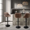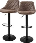 Lot de 2 tabourets de bar revêtement en simili cuir marron avec dossier et repose-pieds réglables en hauteur 62-82 cm ML- Design