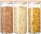 Lot de 3 bocaux de conservation avec Ring en silicone et couvercles en Bamboo 1500 ml x 2/2100 ml – Récipients de Kitchen en verre Air pour céréales – Jam , pâtes, spagti, grains de Coffee , cookies, collations, pot de farine