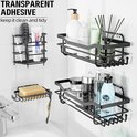 Lot de 4 caddies de Douche de salle de bain, Geen Embouts , organisateur de rangement de salle de bain auto-adhésif, support de douche en acier inoxydable 304 pour organisateur de salle de bain/organiseur de Douche / Cuisine (Zwart)
