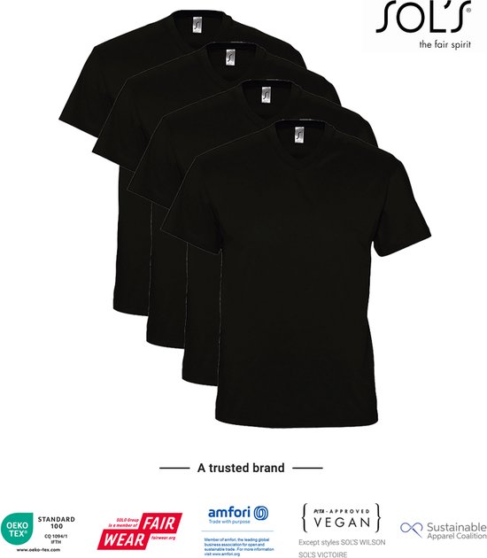 Lot de 4 SOLS Col V, T-Shirt Homme 100% coton Col V, Gris Grijs Taille S