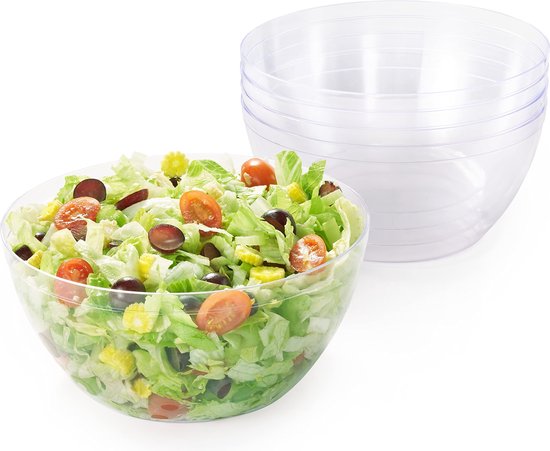 Lot de 5 bols à salade réutilisables – Plastique durable, volume de 3 500 ml, respectueux de l'environnement, Perfect pour la Prep des repas et les grands rassemblements.