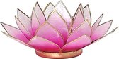 Lampe d'ambiance Lotus Capiz en deux couleurs: rose / orange - avec des bords dorés.