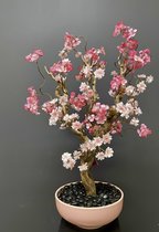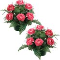 Louis Maes Plante de Fleurs artificielles en pot - 2x - rose - 25 cm - Ornement de composition florale - roses avec feuille verte