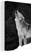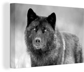 Loup noir en toile noir et blanc 2cm 30x20 cm - petit - Tirage photo sur toile (Décoration murale salon / chambre) / Animaux sauvages Peintures sur toile