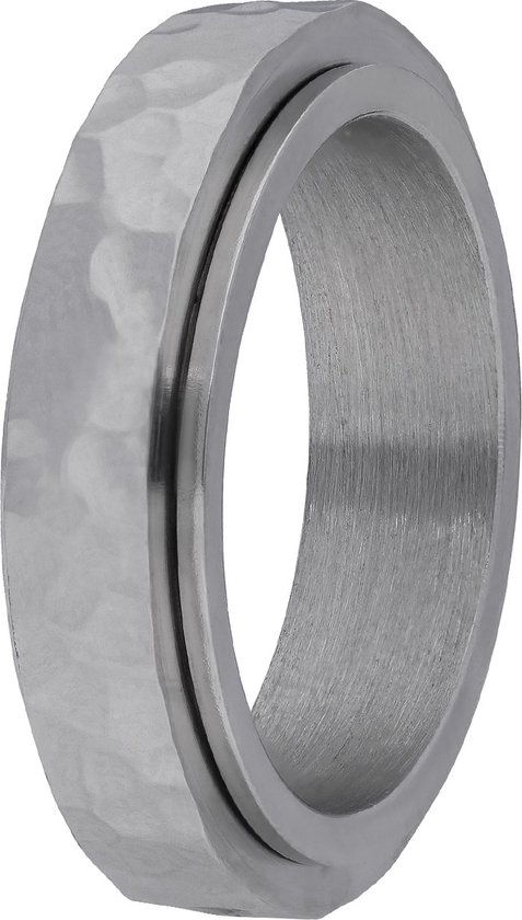 Acier recyclé - Cet anneau d'anxiété en acier a une pièce centrale mobile. Parce que la partie centrale est mobile, vous pouvez tourner l'anneau anti-stress pendant vos moments de stress. La partie mobile a une finition martelée.