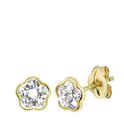 Lucardi - Boucles d'oreilles fleur en or jaune avec zircone 5mm