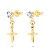 Lumici® | Boucles d'oreilles Croix Sacrée en Cristal - Petites Croix - Pierres - Boucles d'oreilles - Earrings - Cadeau Saint-Valentin - Croix Sacrée - Jésus - Zirconia - Or
