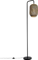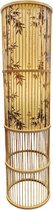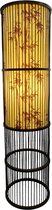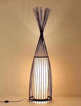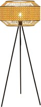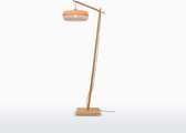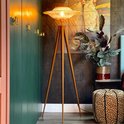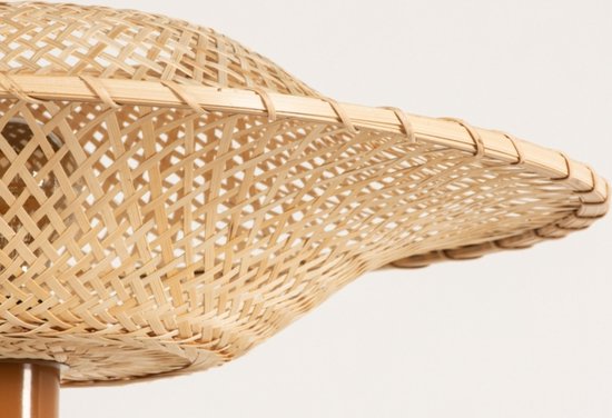 Une particularité de ce lampadaire est le cordon noir qui sort d'un des pieds. Cela a vraiment été pensé, car de cette façon, la lampe reste bien serrée et le cordon ne dérange pas. Toute l'attention va aux pieds et à la belle capuche en rotin. Il y a un interrupteur au pied sur le cordon pour faire fonctionner la lampe. Avec un gradateur enfichable (exclu), vous pouvez facilement atténuer la lumière. Ou optez pour une lampe LED à trois positions. Dans ce cas, tamisez la lumière avec l'interrupteur sur le cordon.