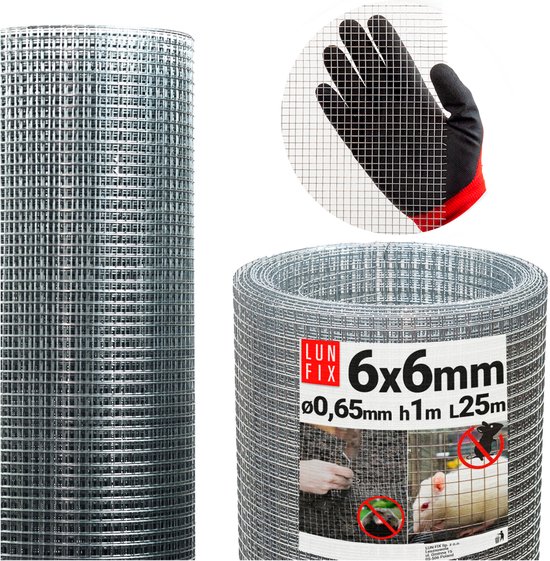 LUN FIX - Grillage anti-rongeurs 100 cm 6x6 fi 0 soudé galvanisé - 25 m