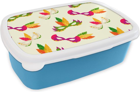Lunch box Blauw - Lunch box - Boîte à pain - Carnaval - Masque - Motifs - 18x12x6 cm - Enfants - Garçon