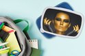 Lunch box Blauw - Lunch box - Boîte à pain - Femme - Portrait - Or - Luxe - Zwart - 18x12x6 cm - Enfants - Garçon