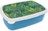 Lunch box Blauw - Lunch box - Boîte à pain - Feuille de palmier - Motifs - Jungle - Tropical - 18x12x6 cm - Enfants - Garçon