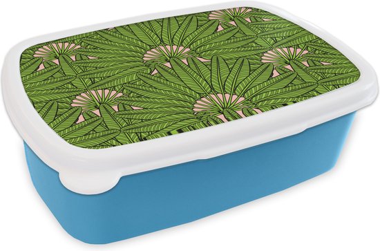 Lunch box Blauw - Lunch box - Boîte à pain - Feuilles - Tropical - Motifs - 18x12x6 cm - Enfants - Garçon