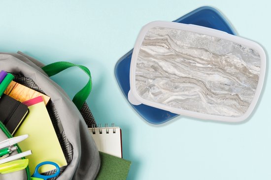 Lunch box Blauw - Lunch box - Boîte à pain - Marbre - Texture - Grijs - 18x12x6 cm - Enfants - Garçon