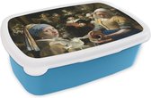 Lunch box Blauw - Lunch box - Boîte à pain - Peintre - Art - Or - Cadres - 18x12x6 cm - Enfants - Garçon