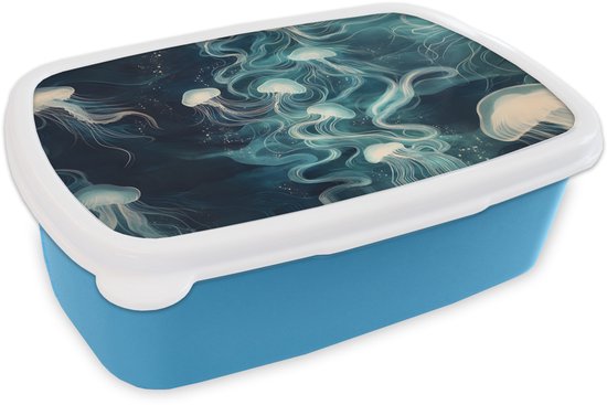 Lunch Box Blauw - Lunch Box Méduse - Mer - Wit - Vagues - Lunch Box 18x12x6 cm - Lunch Box Pain - Boîtes à pain pour Enfants et Adultes