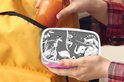 La taille de la corbeille à pain est de 18x12x6 cm. Cela rend la boîte à lunch assez grande pour votre déjeuner et également facile à transporter dans votre sac, par exemple.