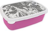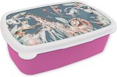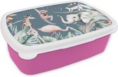 Lunch box Rose - Lunch box - Boîte à pain - Aquarelle - Animaux - Jungle - Singe - Garçons - Blauw - Enfants - Kids - 18x12x6 cm - Enfants - Fille