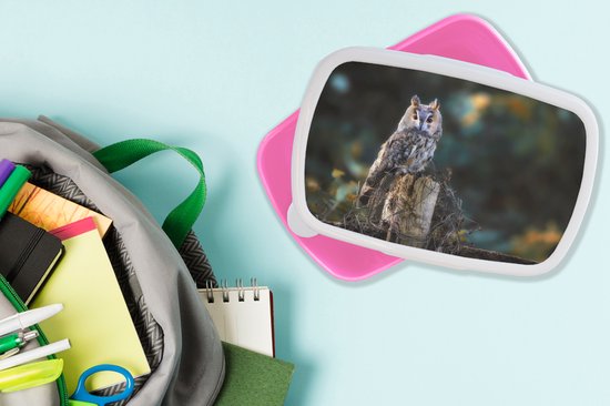Lunch box Rose - Lunch box - Boîte à pain - Chouette - Automne - Vogel - Branches - 18x12x6 cm - Enfants - Fille