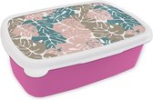 Lunch box Rose - Lunch box - Boîte à pain - Feuilles - Monstera - Hawaii - Motifs - 18x12x6 cm - Enfants - Fille