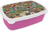 Lunch box Rose - Lunch box - Boîte à pain - Noeud - Billes - Motifs - 18x12x6 cm - Enfants - Fille
