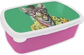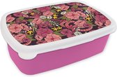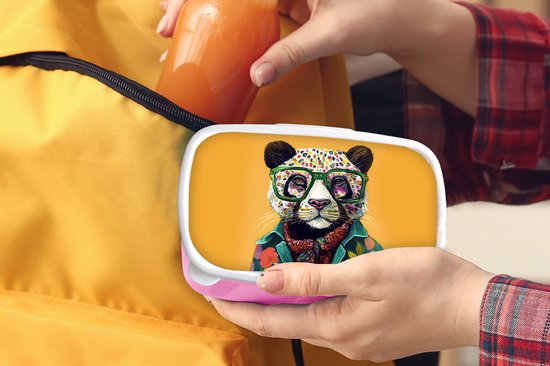 Lunch box Rose - Lunch box - Boîte à pain - Panda - Verres - Fleurs - Hippie - 18x12x6 cm - Enfants - Fille