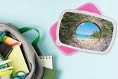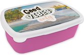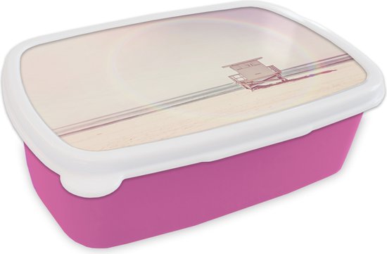 Lunch box Rose - Lunch box - Boîte à pain - Plage - Cabane - Soleil - Mer - Été - 18x12x6 cm - Enfants - Fille