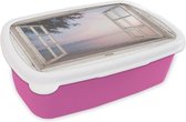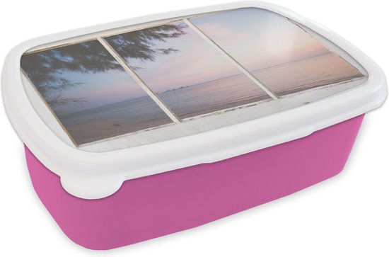 Lunch box Rose - Lunch box - Boîte à pain - Transparent - Palmier - Mer - 18x12x6 cm - Enfants - Fille