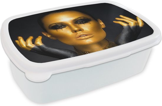 Lunch box Wit - Lunch box - Boîte à pain - Femme - Portrait - Or - Luxe - Zwart - 18x12x6 cm - Adultes