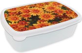 Lunch box Wit - Lunch box - Boîte à pain - Fleurs - Oranje - Rose - Zwart - 18x12x6 cm - Adultes