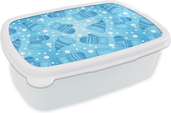Lunch box Wit - Lunch box - Boîte à pain - Gants - Bonnet - Hiver - Motifs - 18x12x6 cm - Adultes