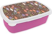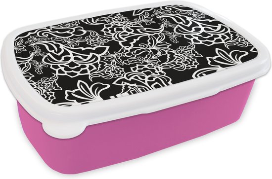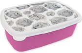 Lunchbox Rose - Lunchbox - Boîte à pain - Motifs - Bloem - Wit - 18x12x6 cm - Enfants - Fille
