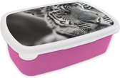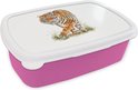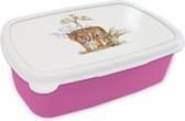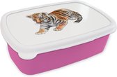 Lunchbox Rose - Lunchbox - Boîte à pain - Tigre - Pieds - Wit - 18x12x6 cm - Enfants - Fille