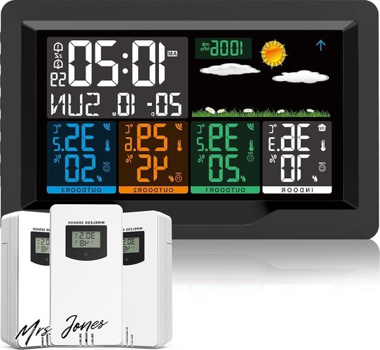 Madame Station météo avec capteur Jones Premium Collection - Sans fil - Multifonction - Wifi - Thermomètre - Hygromètre - Wekker numérique - Radio-réveil DCF