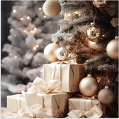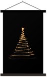 Sur fond noir, une spirale de lumière dorée dessine les contours d'un sapin de Noël. Au sommet, une étoile brillante brille, tandis que de minuscules étincelles scintillent le long des lignes. Son design minimaliste est festif, élégant et enchanteur.