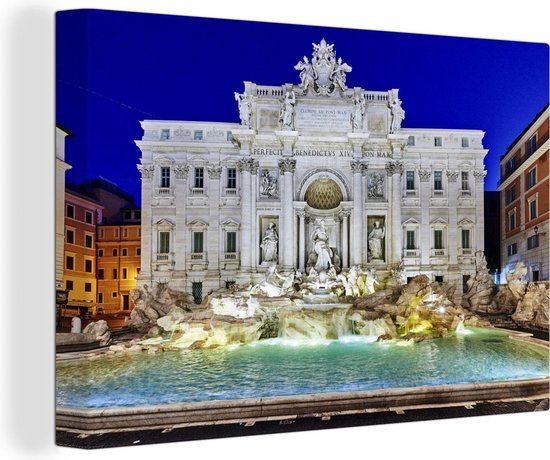 Magnifiquement éclairé Fontaine de Trevi à Rome en toile 120x80 cm - Impression photo sur toile peinture Décoration murale salon / chambre à coucher) / Villes Peintures Toile