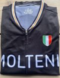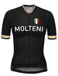 Une réplique RedTed du maillot cycliste noir de Molteni. Ce maillot cycliste confortable est une réplique du maillot de l'équipe cycliste professionnelle italienne Molteni de la période 1958-1976. Ce maillot est de la période Merckx (1971-1976). Une chemise de performance magnifiquement coupée par Molteni.