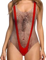 Offrez de l'hilarité et des moments inoubliables avec ce maillot de bain pour femme avec une touche amusante ! Ce maillot de bain unique est conçu pour ressembler à un gentleman hirsute avec un look mankini classique. Avec son imprimé saisissant et audacieux représentant un homme en string, ce maillot de bain est parfait pour celles qui aiment voler la vedette lors des occasions festives.